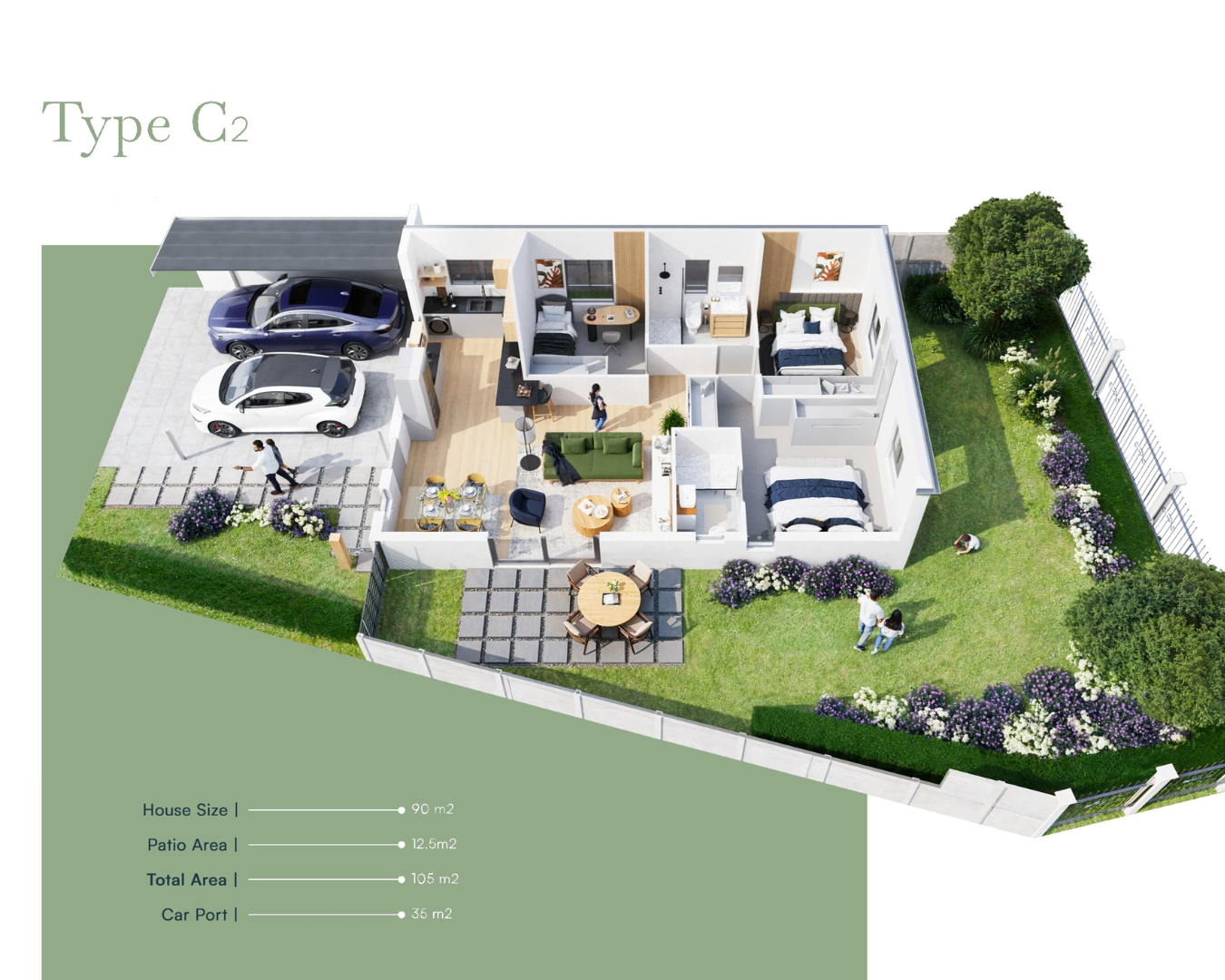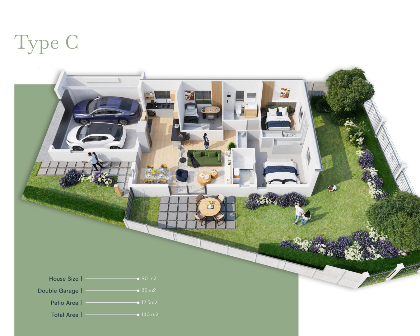 Your spacious Jardine home is designed with easy living in mind. Bright and open, your open plan living areas walk out into an exclusive walled garden. Pick your choice of 2 bedroom, 2 bathroom homes, or 3 bedroom, 2 bathroom homes.